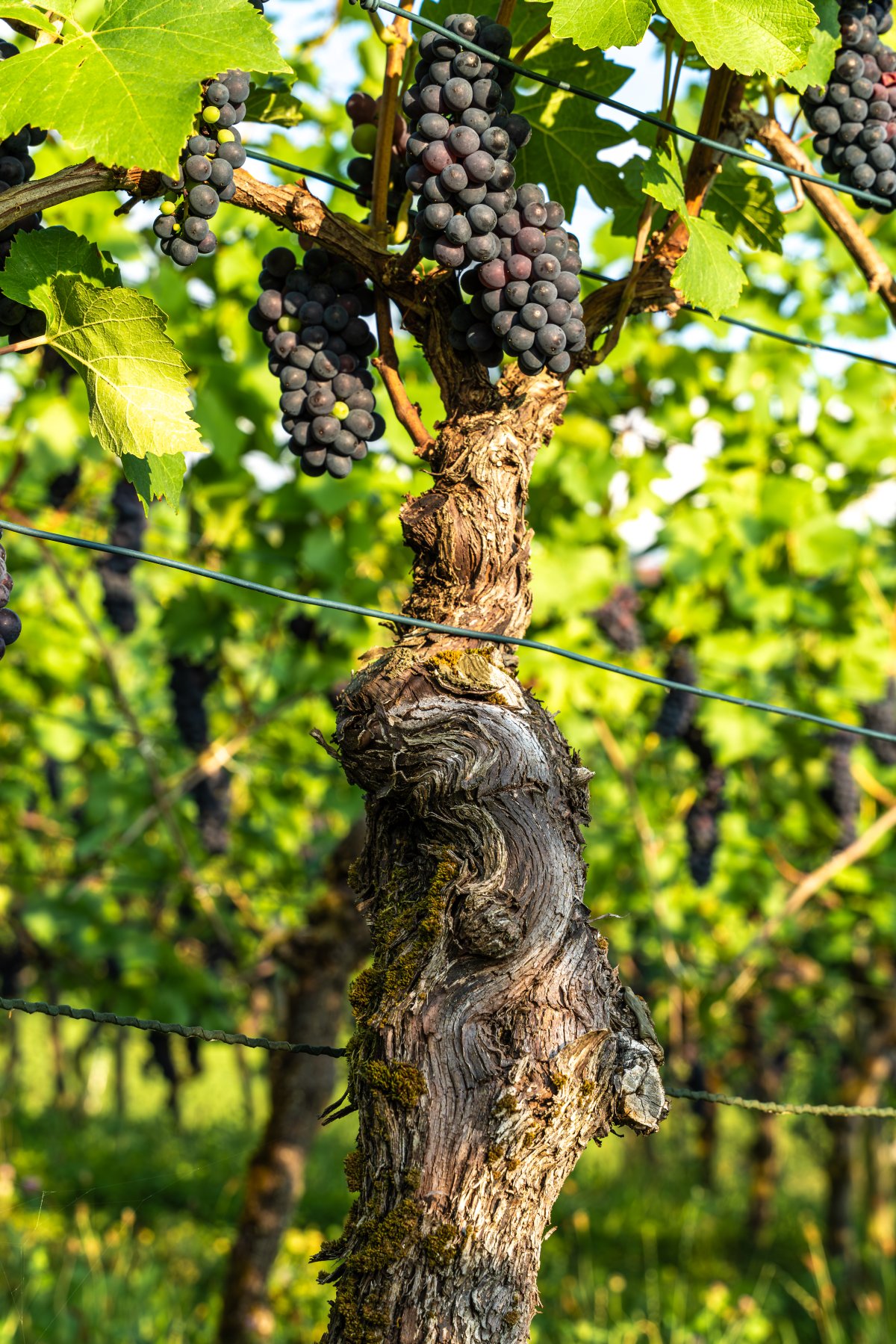 Auf unserem kleinen Weinberg im Fricktal bewirtschaften wir auf 0,23 Hektar rund 1000 Reben. Die Lage befindet sich auf der Dittishalde im aargauischen Dorf Oeschgen. Charakteristisch für diesen Weinberg ist das leichte Ost-West-Gefälle, durch das eine sanfte thermische Brise entsteht. In Verbindung mit den über 40 Jahre alten, hochgewachsenen Rebstöcken sorgt diese Brise dafür, dass die Reben regelmäßig gut durchlüftet werden. Besonders in feuchten Perioden trocknen die Trauben dadurch bereits in den frühen Morgenstunden, was ihre Gesundheit stärkt und sie weniger anfällig für Krankheiten macht.